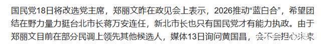 闽南网2025-10-13:郑丽文抛“新北市长必蓝”,黄国昌:候选人人提政见争取支持很正常