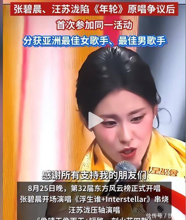 八月那场颁奖礼,气氛尴尬到极点 2025年8月的东方风云榜颁奖礼,现场来了不少音乐人。 汪苏泷和张碧晨都在受邀名单里,这是版权争议之后两人第一次出现在同一个场合。 媒体早就盯上了,镜头不停地在两人之间切换,想捕捉点什么。 结果确实被他们拍到了,整场活动下来,两个人愣是没有任何交流。
